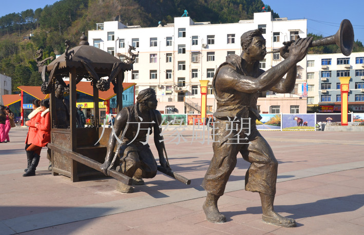 《銅雕》落成于青川人民公園的民俗雕塑“抬花轎